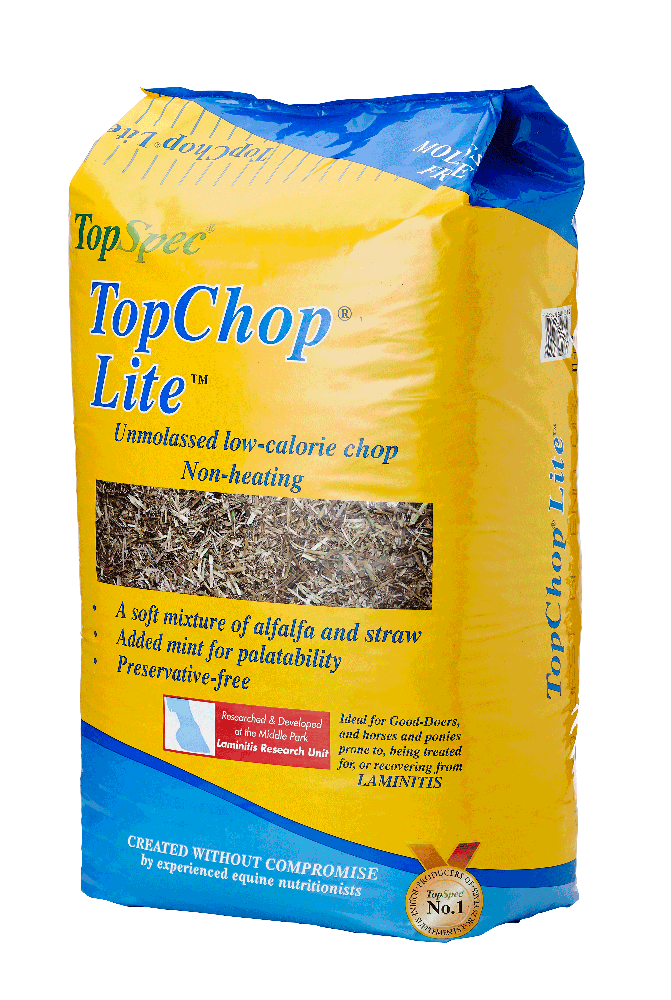 TopChop Lite is of similar nutritional value to average quality hay but contains less sugar. The composition and fine texture of this product make it ideal for horses and ponies prone to, being treated for, and recovering from laminitis. It is suitable for all horses and ponies and perfect for good-doers and others prone to weight gain.
